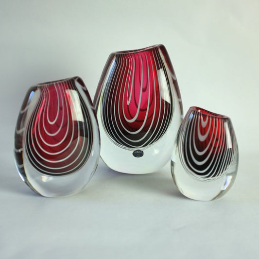 Set of three Zebra vases by Vicke Lindstrand for Kosta, Sweden. 1950s.